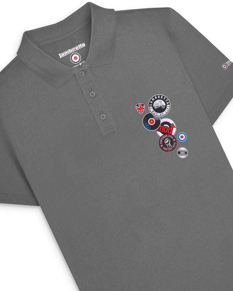 Lambretta Men's SS6014 Badges Polo Shirt Iron Grey